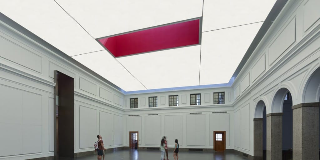 Muzejā iestieptie griesti tiek izmantoti, lai radītu mūsdienīgu un māksliniecisku vidi.