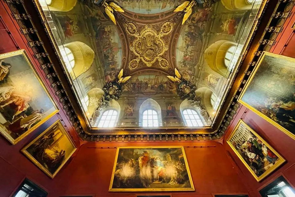 Muzejā iestieptie griesti tiek izmantoti, lai radītu greznu un vēsturisku atmosfēru.