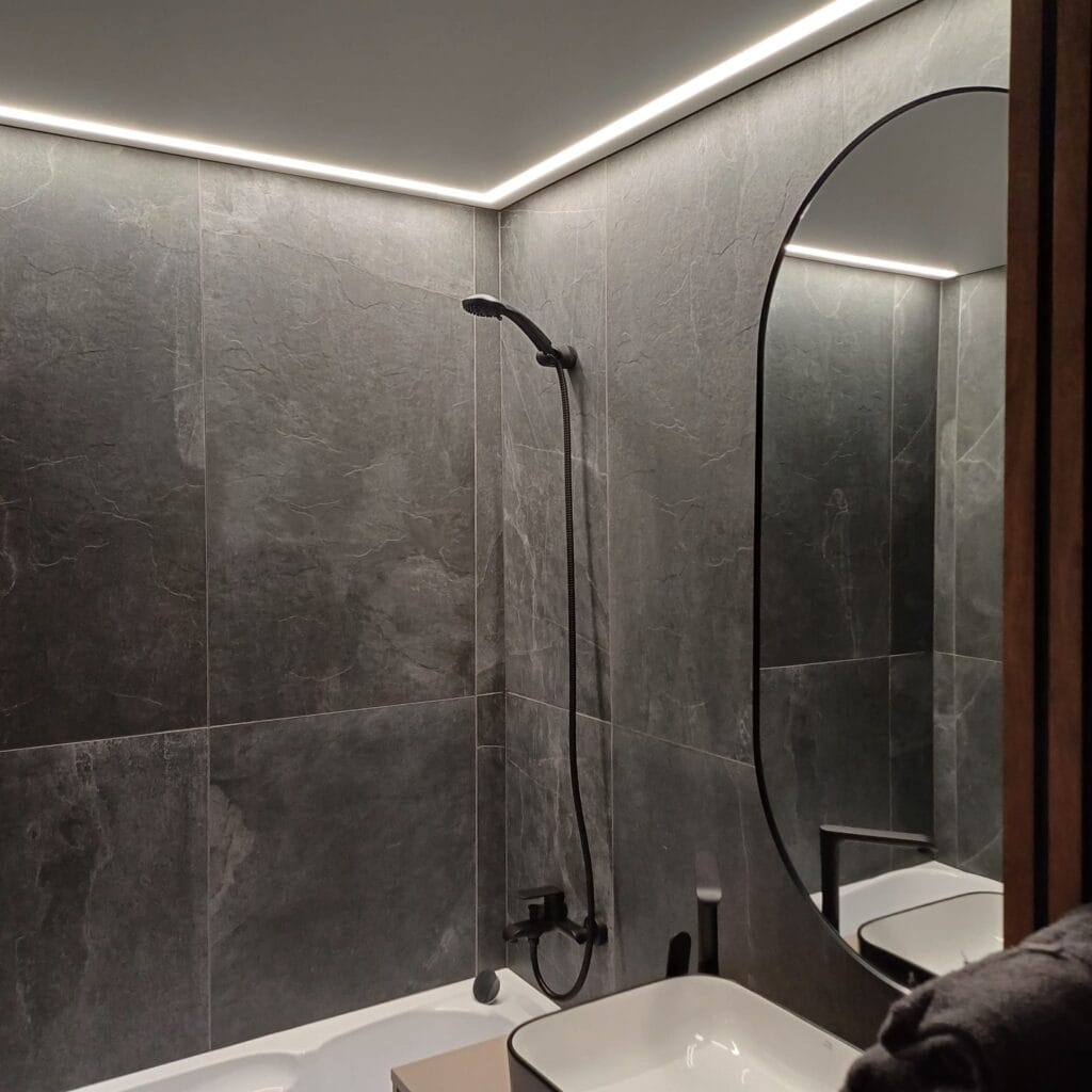 Pēc uzstādīšanas šādi griesti pazeminās griestu līmeni par 40 mm, ja tie ir plēve, un par 35 mm, ja tie ir auduma.